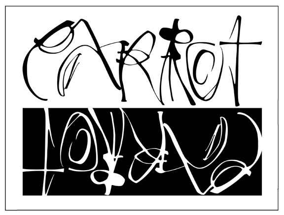 8.5" x 11", written with a folded ruling pen, then scanned into Illustrator, cleaned up with the Bezier Pen, duplicated and reversed